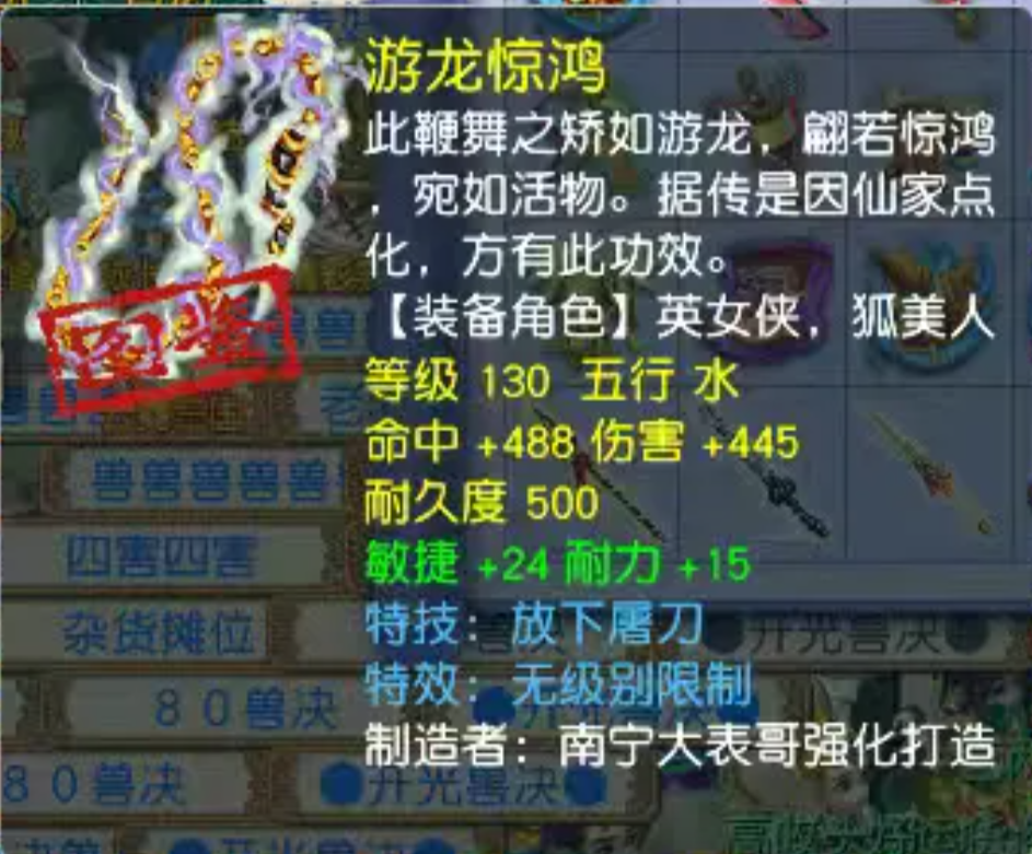 《畅玩服再续前缘》又炸了!这次直接爆出一把堪称“畅玩服第一神器”的130级鞭子——伤害+445,命中+488,耐敏双加39,特技还带了“放下屠刀”,最关键的是,它居然有无级别限制!