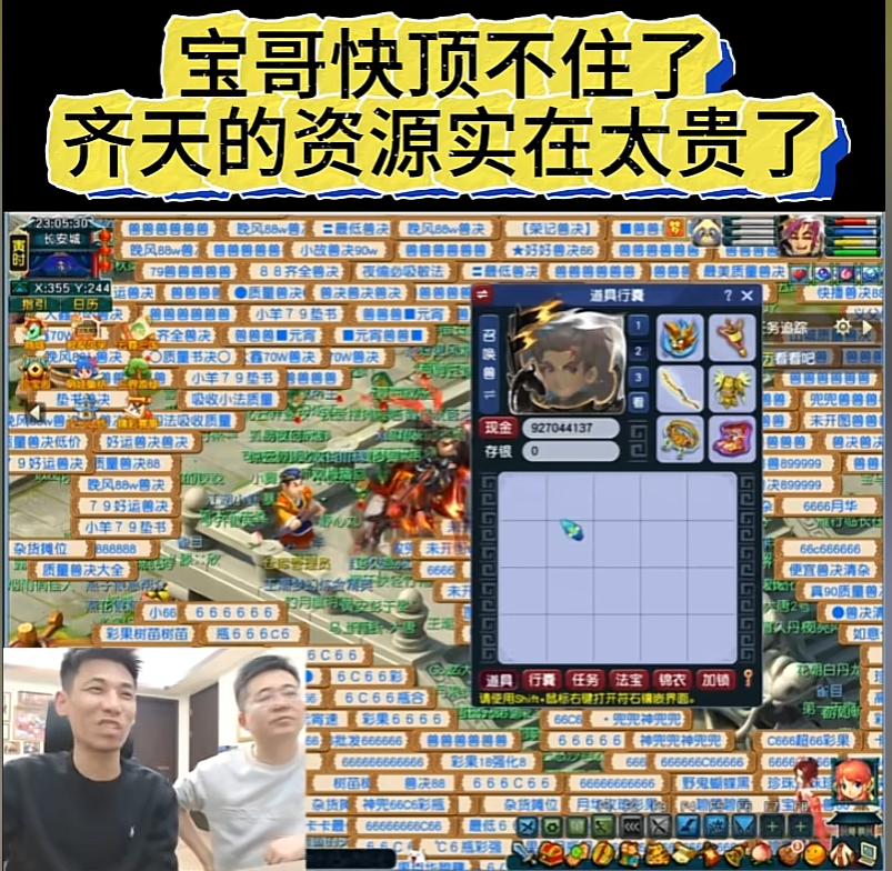 宝哥快顶不住了,宝哥直播中透露说:齐天大圣的资源实在太贵了,而且齐天的鉴定是140的鉴定,每天几百件是真是死贵。加上宝宝装备跟合宝宝,然后打了14段宝石。最近光打了这么多件装备的14段宝石都花了好几十。这玩意儿真是确实很花钱。但是呢,我们仍旧一直在坚持鉴定,就是等待他给我们出无级别加大特技的那一天。