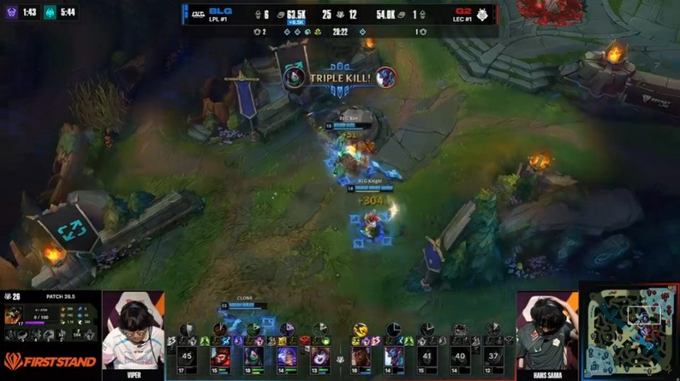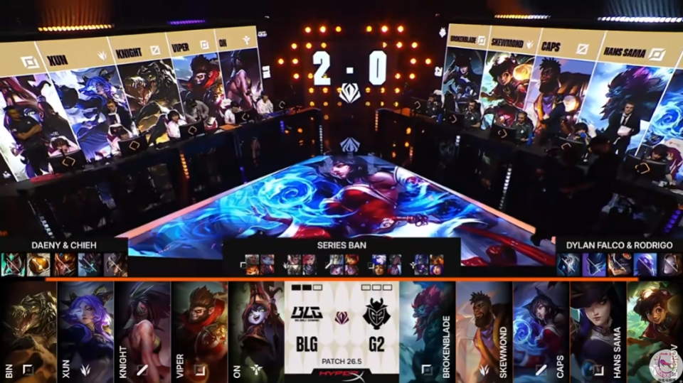 先锋赛的赛程很短只有一周,BLG率先晋级到了淘汰赛四强。G2仍然有一次机会,不过考虑到他们的对手可能是韩国队BFX,因此晋级希望已经不大了。G2还是保持着自己内战王的人设,一点也没崩。稳定赢下联赛,稳定在世界赛挨打。去年赢下BLG或许给了他们太多错觉,至少在这场Bo5中,他们和BLG之间的实力差距太大了。
