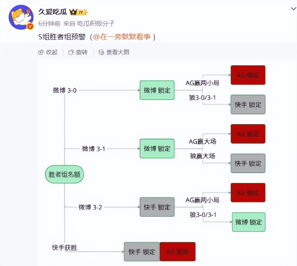 有大佬已经总结了接下来的胜负关系,很详细了,WB对阵KSG,狼队对阵AG超玩会,胜负关系和晋级胜者组的比分,一目了然,各位可以好好看看。