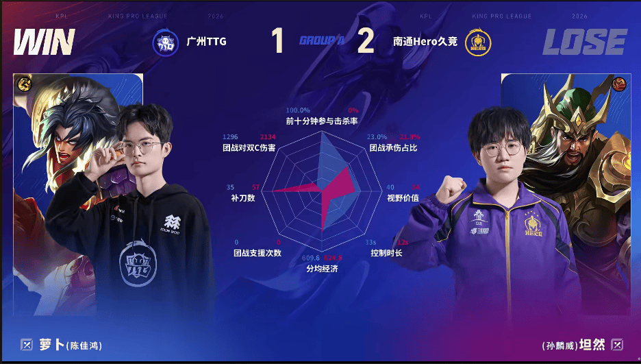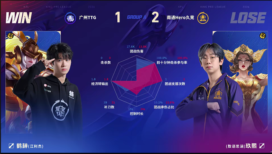 TTG/Hero第三局数据对比:小雪戈娅数据全包围妖刀后羿