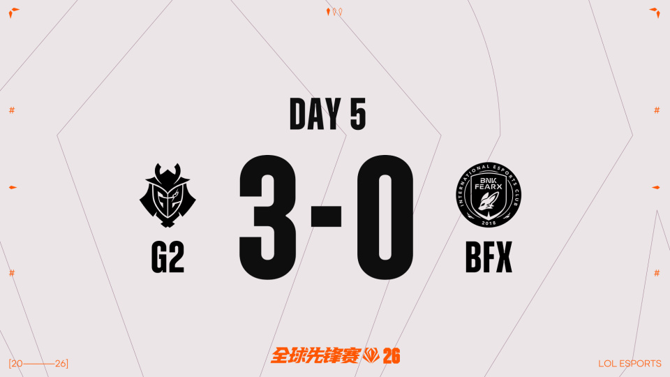 恭喜G2战胜BFX,晋级2026全球先锋赛半决赛。