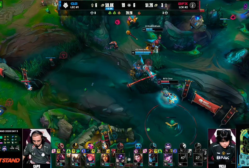 英雄联盟2026全球先锋赛已经来到了小组赛阶段的最后一个比赛日,在BLG和GEN双双晋级半决赛后,剩下的两个名额将在G2\BFX\JDG\LYON四支队伍之间产生,今天的首场比赛就是G2与BFX对决。