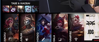 JDG选用:Xiaoxu亚恒;Junjia蔚;HongQ狐狸;GALA霞;Vampire洛