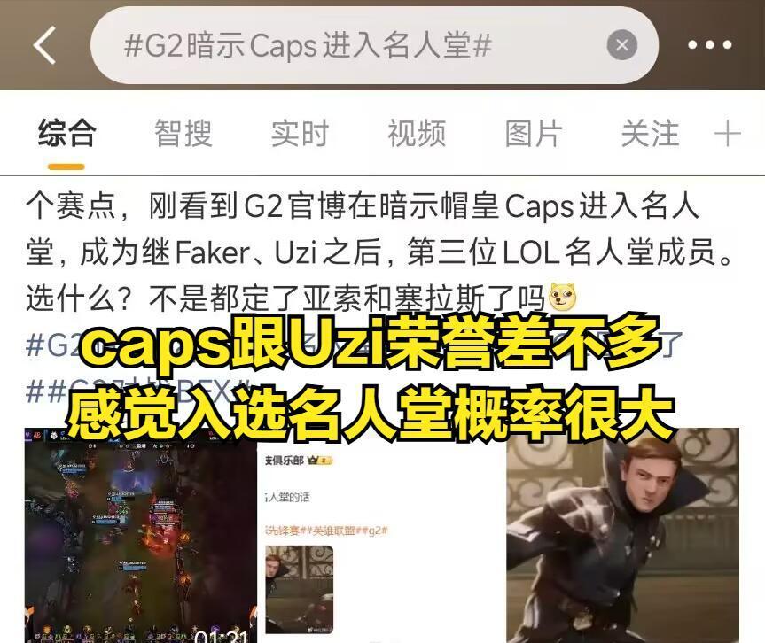 当然G2在官博当中也是询问粉丝们,如果caps入选名人堂,那么caps的名人堂皮肤选什么才好?而G2这段暗示发言,也是引起很多观众的讨论,毕竟拳头官方并没有明确表示caps入选名人堂,但是不少业内人士都透露过,LOL第三个名人堂皮肤将会给caps。讲道理caps如今的成绩和人气都跟Uzi差不多,所以我个人猜测拳头给caps颁奖的可能性很大。