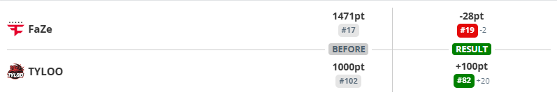 TYLOO三图淘汰FaZe,豪取100积分!京介归队,猎鹰图一乐不敌NAVI