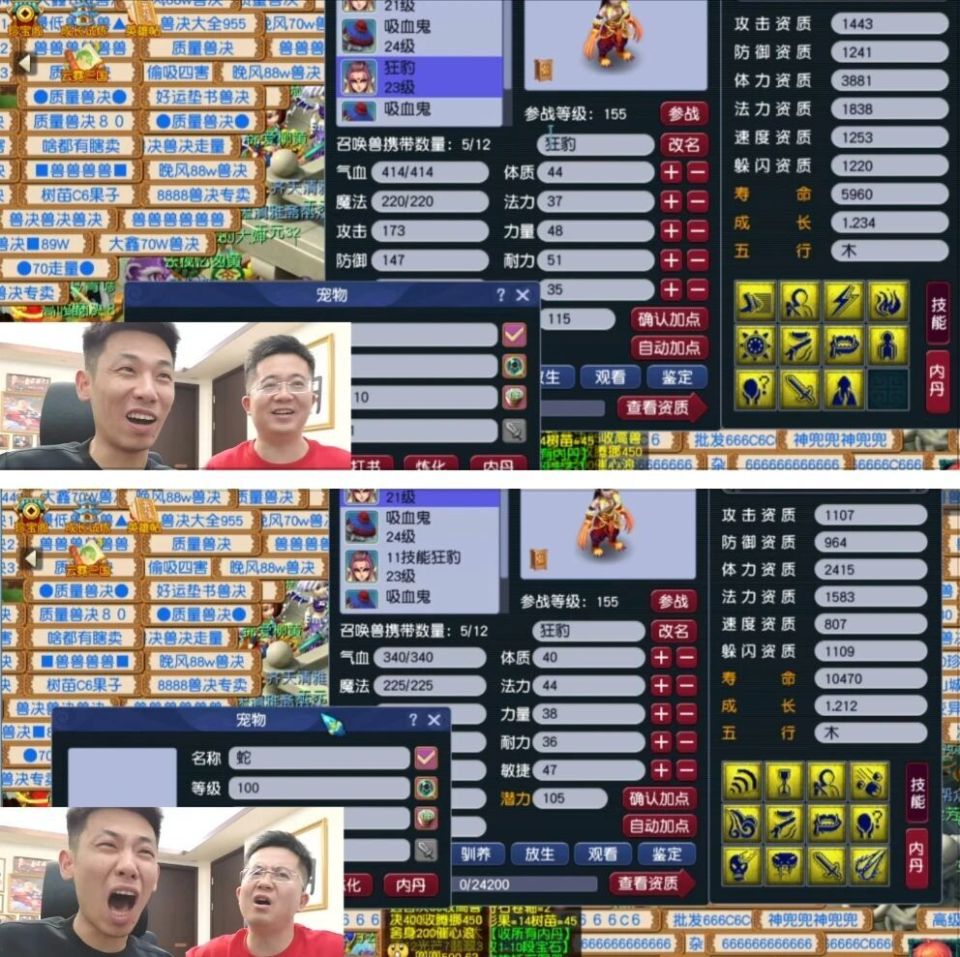谁也没想到,最后一组炼妖直接起飞,一口气炸出11技能和12技能两只狂豹。11技能那只资质还算不错,可12技能那只资质实在太拉胯,宝哥叹了口气:“这种资质,养三四年才能成型,实在等不起。”最终还是忍痛放弃。