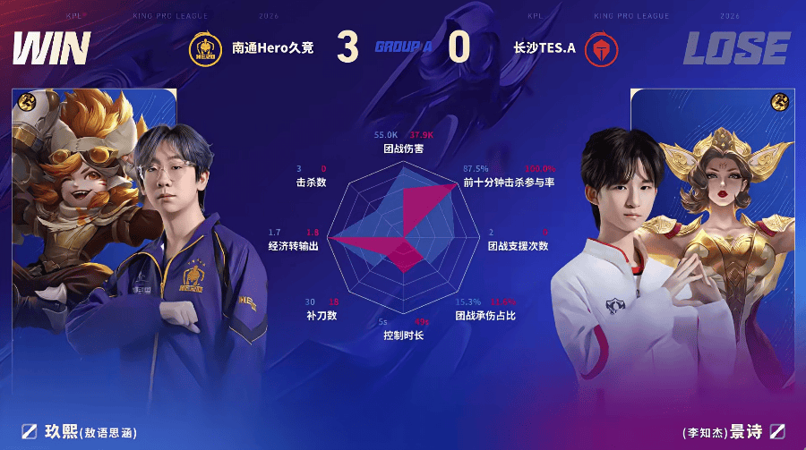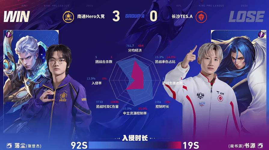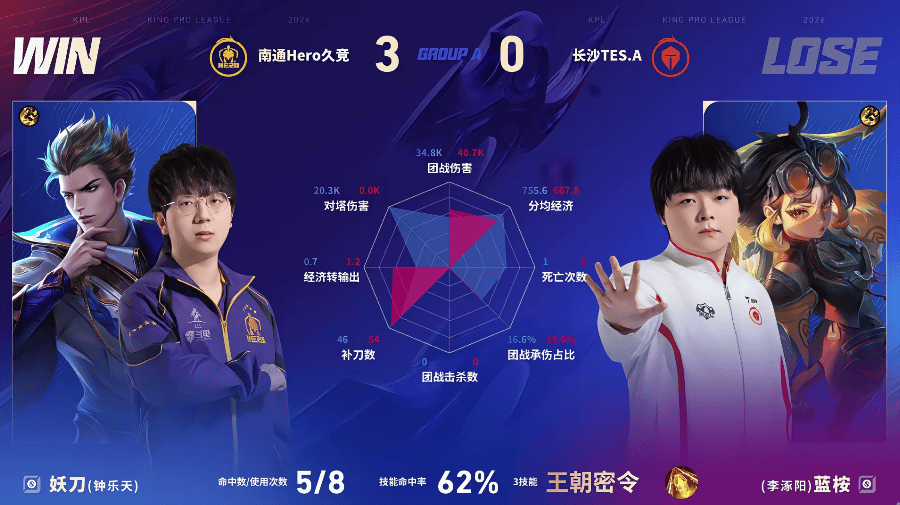 Hero/TES.A第三局数据对比:Hero上野多数据领先对位