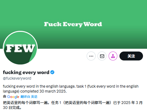 (注:funking every word账号会把英语里每个单词都骂一遍)