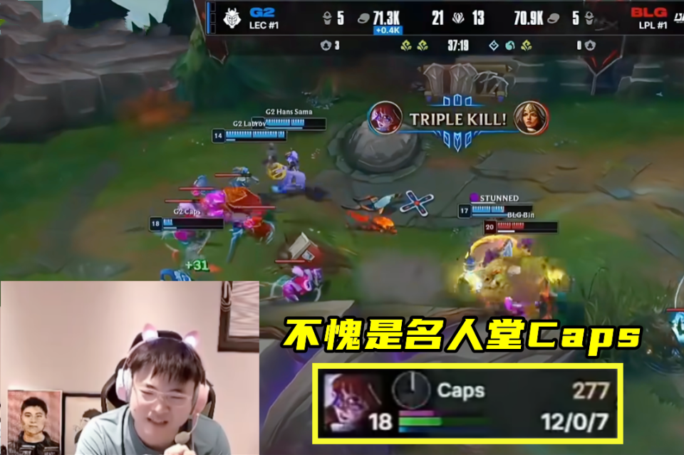 这句话与Showmaker的“重振LCK荣光,我辈义不容辞”有着同等震撼,玩家们也是不禁感慨:不愧是名人堂成员,Caps值得!下面咱们也是来看看G2与BLG的最终一战,双方的第一局,双方中路一波3V3在Caps兔子的狂秀下,G2当场打出1换3,局势大优。之后双方打野各自gank,都抓出了几波节奏,但总体来说G2节奏更好,眼看着G2要掌握大势。Xun波比中路却开到了G2的AD和上单,AD倒地后G2直接溃败,BLG则有了翻盘的机会。