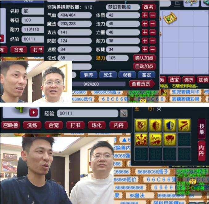 接着宝哥又跑去炼妖,三包炼妖下来,只出了一只11技能的狂豹还算能看,可惜资质和成长都不太理想。不过再怎么着,这只也值个几万块。直播间不少粉丝问他:“宝哥,你这不是浪费钱吗?怎么不直接买现成的极品胚子?”宝哥当场霸气回怼:“要是有人卖,谁有病啊自己炼妖?人家队伍里出了好宝宝,根本不卖,都自己留着用!”