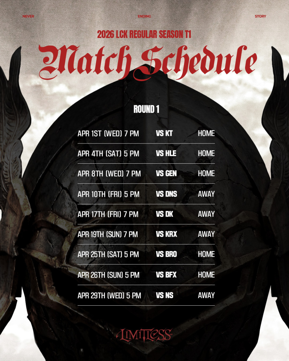 LCK常规赛T1赛程表:首轮4月4日、8日接连迎战HLE、GEN
