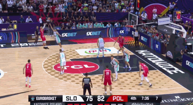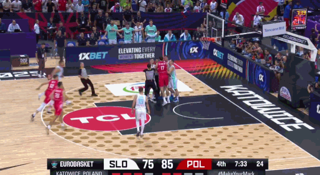 比赛还剩7分33秒时,斯洛文尼亚队以75-85落后,东契奇与波兰队中锋奥列尼恰克在地板上发生身体纠缠后,双方爆发了言语冲突。
