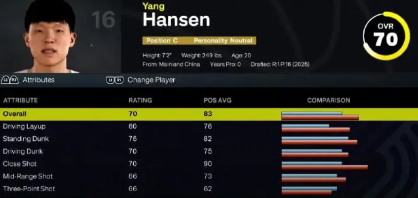 更有意思的是,不少网友调侃道:“杨瀚森在游戏里就是我们操控的未来巨星,从70打到90靠的就是时间!”这种互动氛围正是NBA2K与真实篮球联动的魅力所在,现实中的进步能及时反映在游戏数据上,而游戏中的体验又能进一步放大球员的影响力。