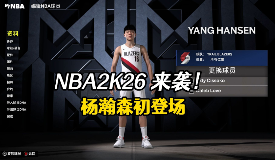 杨瀚森排面拉满,NBA2k26主管亲自揭晓能力值,还给了特权