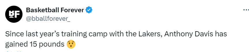 不过,浓眉有比较严重的伤病史,外界普遍认为他应该格外努力确保他的身体处于最佳状态,否则可能会导致他在赛季中缺阵。增加体重可能会让戴维斯更重、更强壮,但这会给他的腿部带来额外负担。至少,大部分球迷们坚信这将带来坏消息。