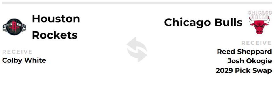 公牛得到:谢泼德+奥科吉+2029年首轮互换。