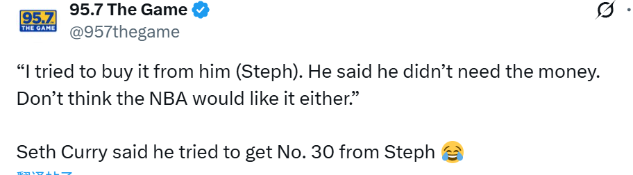 塞斯-库里表示在过去16年里,自己可能观看了勇士队95%的比赛。他还在采访环节开玩笑说,曾试图从斯蒂芬-库里那里买下30号球衣:“我试着想买下这个号码,结果他说自己不缺钱。而且我觉得NBA也不会同意这种做法。”