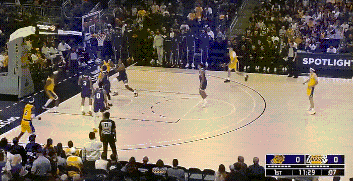 没有了里夫斯,湖人场上失去了唯一的进攻发起点,其余人基本都不具备支配球能力。
