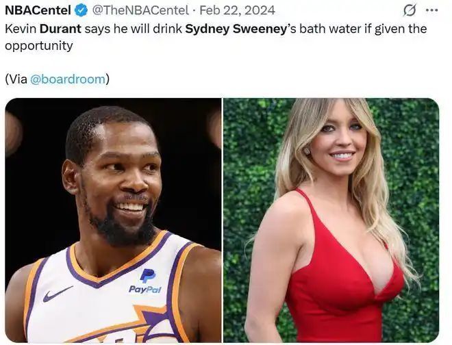 后来,随着悉尼姐在娱乐圈名声大噪之后,杜兰特又开玩笑称想喝悉尼姐的洗澡水,有意思的是,在今年年初的时候,悉尼姐还出售带有自己洗澡水的肥皂,这也是圆了杜兰特的梦想。