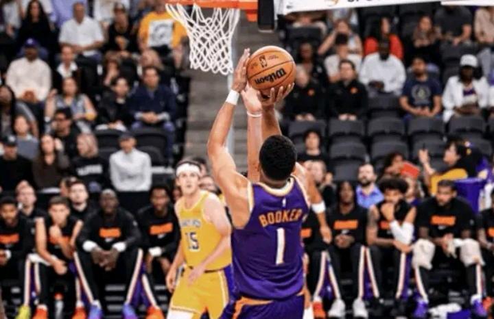 半场比赛战罢,太阳57-44领先湖人13分。下半场比赛开始,易边再战,阿伦正面三分球果断出手空心入网,揭开第三节比赛序幕,狄龙强硬单打,篮下予取予求擦板得手,阿伦抢断快攻犹如无人之境,轻松上篮又打进一球,湖人上来就崩盘,分差来到了20分以上。八村塁的定点干拔帮助湖人稍稍止血,布克手感滚烫,超远距离三分开火洞穿篮心,奥尼尔底角三分空心打进,布朗尼也上场了,侧翼外线开火打进一球,两队分差越拉越大,没有东契奇和詹姆斯的湖人队,看样子还是不行,被就一个布克的太阳碾压着打,三节比赛打完,太阳87-62领先湖人25分。