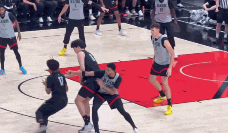 最终全场打完,这一场为开拓者队内公开训练赛,杨瀚森所在的黑队43-42险胜灰队,虽然没有详细的数据统计,但他至少有着5分2助进账,同时可以看出我们这位中国球员会是球队的第二中锋。