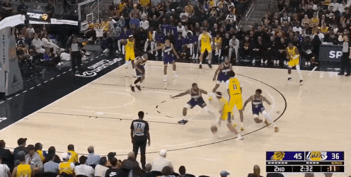 但进攻端是纯纯副作用,湖人很多时候只能尴尬四打五,仿佛又回到了23年西决。