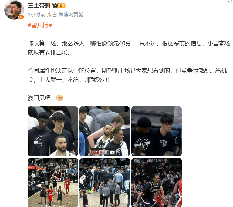 国内媒体人对此表示,篮网本场比赛就没打算安排曾凡博出战。