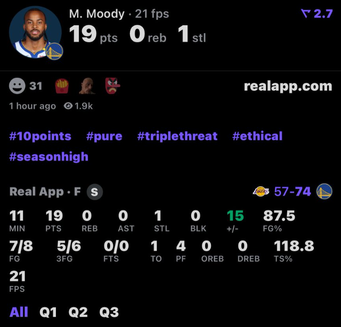 穆迪其实上个赛季在勇士的问题也是不够稳定,所以也是在绝对主力和DNP中来回切换。