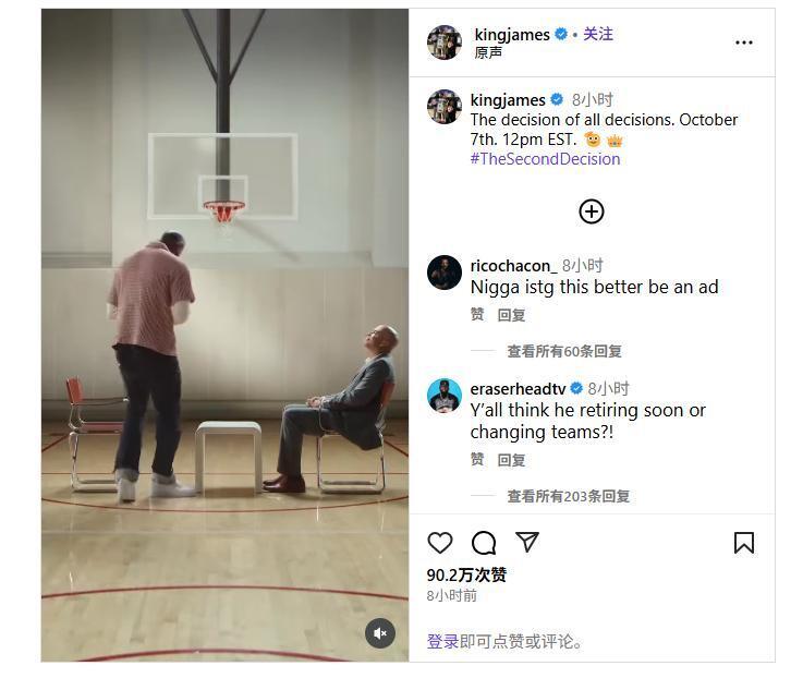 无论最终的“决定二”是什么,詹姆斯这一次公开预热行为再一次展现了其巨大的影响力。