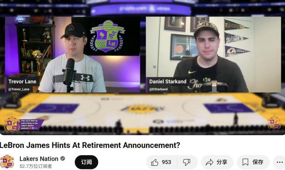 湖人随队记者Daniel Starkand与Trevor Lane在《Lakers Nation》节目中,也对詹姆斯这条动态做出分析,认为詹姆斯如果此时宣布退役将是合适的时机,有希望像科比那样获得致敬。