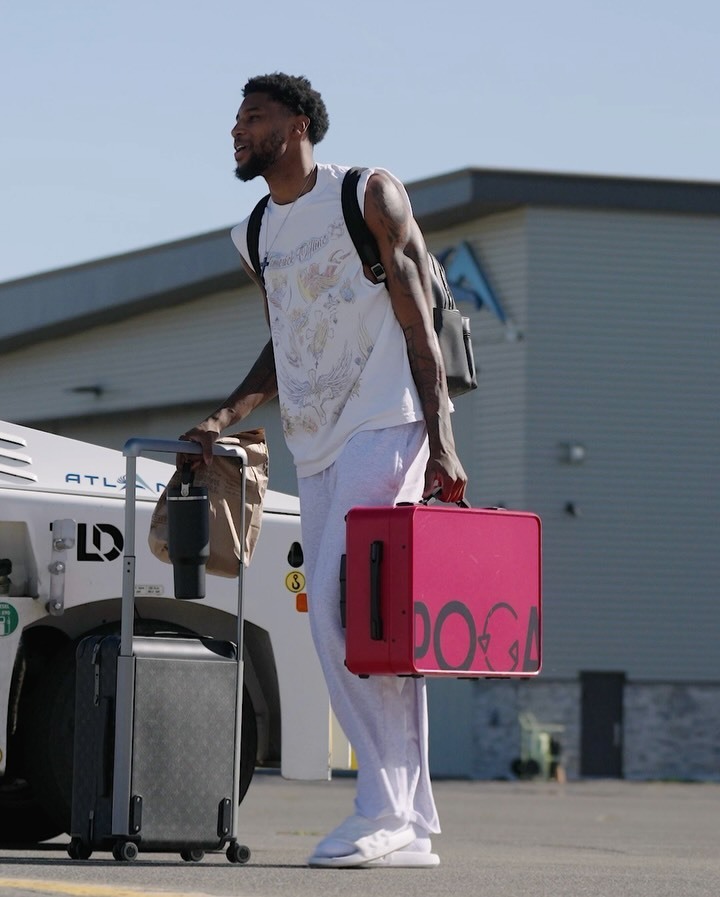 北京时间10月8日,开拓者完成今日训练后前往机场,准备开启新赛季的第一次客场之旅。他们的季前赛首个对手是勇士队,杨瀚森也出现在镜头中,他开心地秀着自己的新秀装备——粉色小书包,显然对NBA生涯首场季前赛也是充满期待。