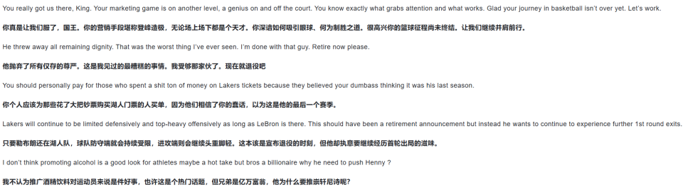 然而,当詹姆斯最终公布所谓的“决定二”时,却让所有人大跌眼镜。原来,这并非是球迷们期待的退役声明,而是一则轩尼诗的酒水广告。这一结果犹如一盆冷水,浇灭了球迷们心中的热情之火,也引发了众多媒体和球迷的强烈不满。