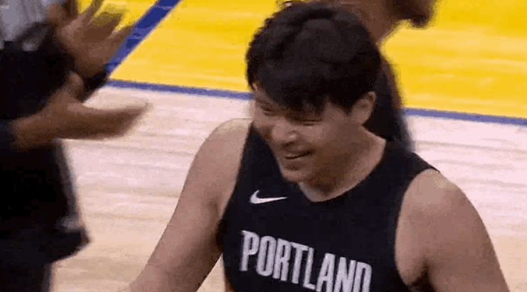 拿下季前赛首分之后,如释重负的杨瀚森笑得跟200多斤孩子似的。
