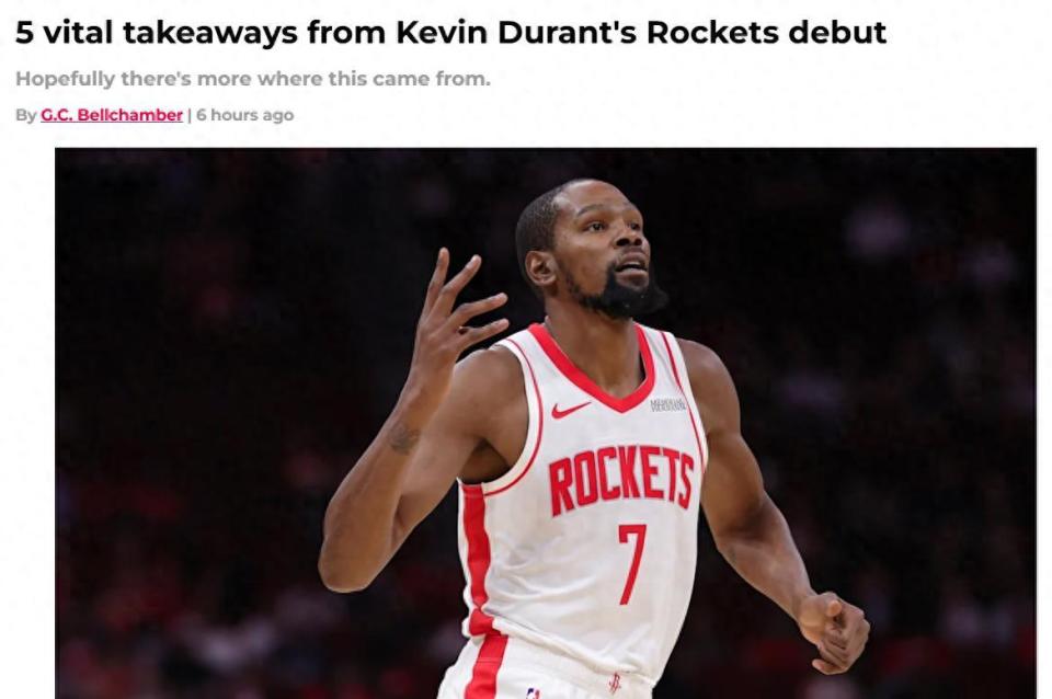 火箭队8换1押对宝!休媒晒杜兰特首秀5大收获:申京解压+短板补强