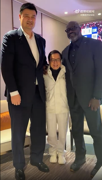 成龙被夹在中间,只能仰望姚明和奥尼尔。