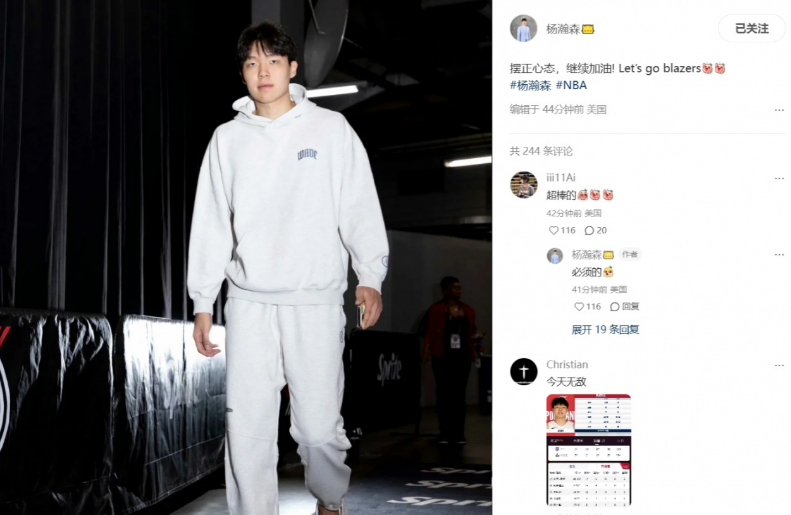如今杨瀚森通过社媒晒照,并且写道“摆正心态,继续加油! Let’s go blazers!(让我们冲啊!开拓者)”