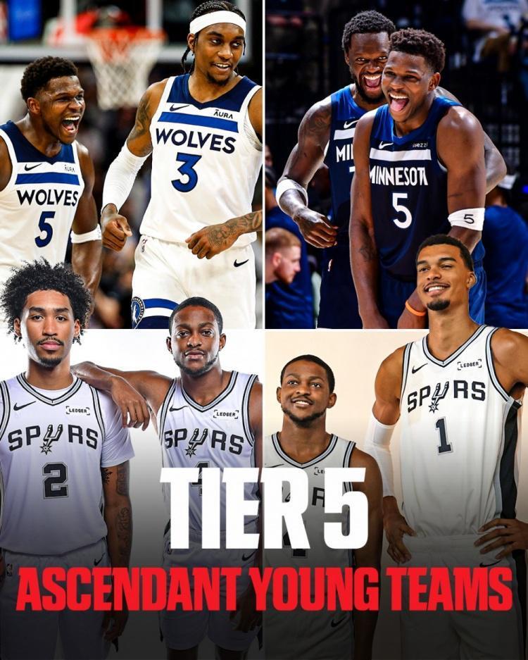 第五档有森林狼和马刺的三人组。森林狼是爱德华兹麦丹和兰德尔,虽然麦丹很有潜力,不过现在球队戈贝尔应该是另一个巨头吧,球队当中的顶级蓝领比较多,所以也让他们连续两年打进了西部决赛。马刺的文班福克斯和哈珀,这个三人组的潜力还是很高的,未来的上限也很高,天赋极佳,未来文班也是会让这支马刺变得十分有竞争力。