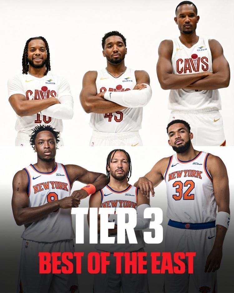第三档有骑士和尼克斯,东部下赛季前二的两支球队。骑士米切尔加兰和莫布里,骑士队最大问题就是这对后场组合因为太矮,防守差劲季后赛很容易被针对。尼克斯唐斯布伦森和阿奴诺比,布伦森证明了自己是一个超级大核,而唐斯则是联盟最好的二当家之一了,阿奴诺比虽然没有入选过全明星,但是有球权数据也不会差。