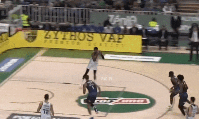 “坤老四”,科斯塔斯-阿德托昆博,现年27岁,2018年次轮第60位被76人队选中,曾在独行侠和湖人打过球,现效力于希腊本土联赛奥林匹亚科斯;