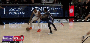 阿夫迪亚偏向 “虎山行”,面对国王两人围堵毫无惧色强行突破,顶着防守完成上篮得分;