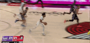 一套背运+转身上篮的娴熟连招直接打蒙对位的尤班克斯,个人连得10分!!!