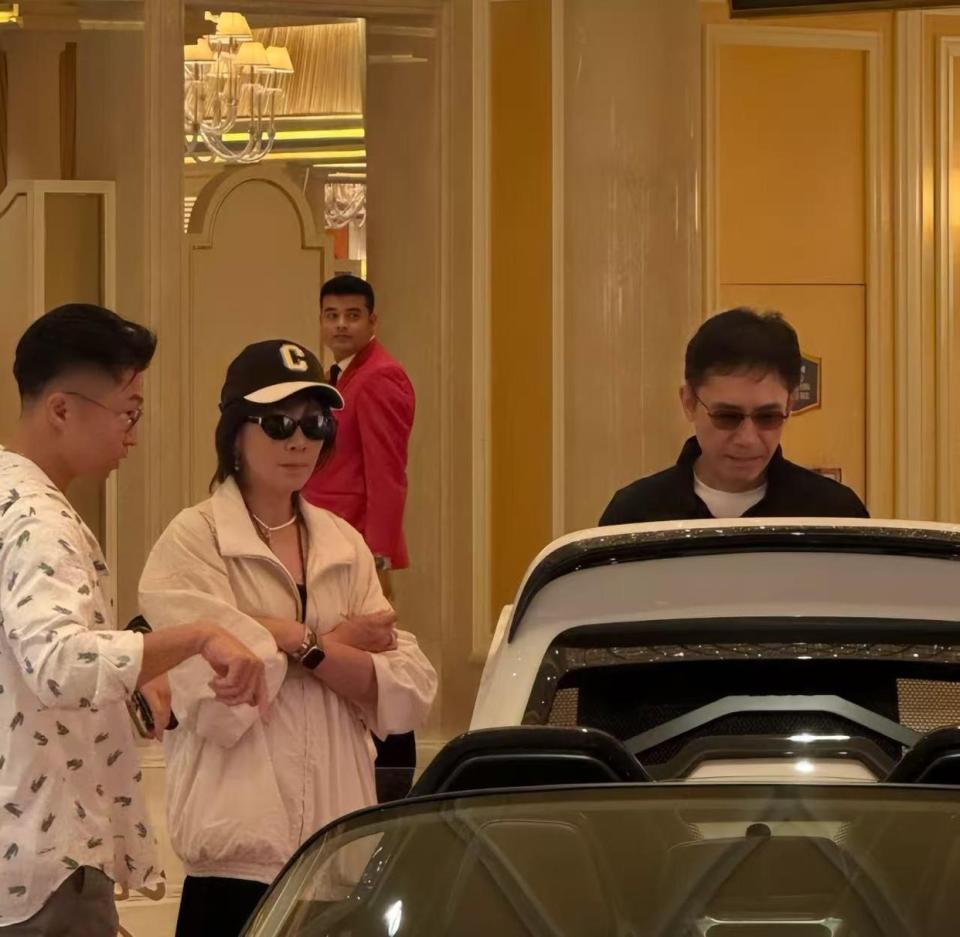 梁朝伟紧跟在老婆身后,刚一进大厅就被那辆豪车给吸引住了,坐上去之后还试了一下,他脸上的笑容说明他挺喜欢这辆车的。