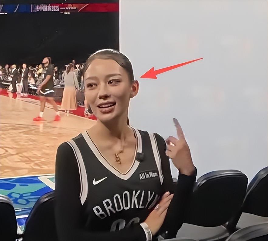 吉娜当天穿着88号的球衣,下身搭了一条紧身牛仔裤,这还是头一回看到有人把球衣穿得这么性感,挺新鲜的。
