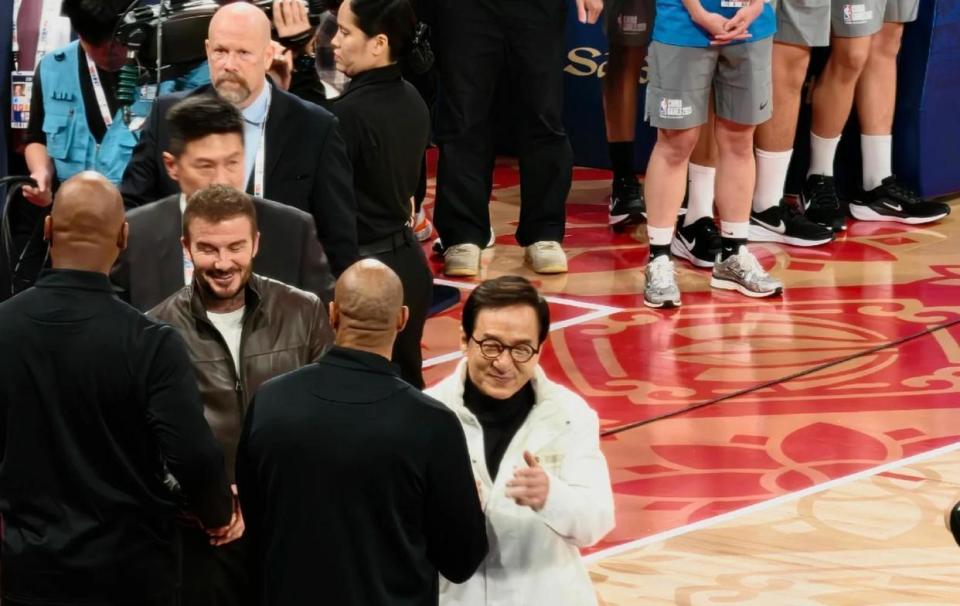 姚明、贝克汉姆、奥尼尔这些大牌明星一起出现,挺热闹的。而作为赞助商的知名企业家马云,也肯定少不了要到场看看,蔡崇信和吴泳铭也都纷纷亮相了。