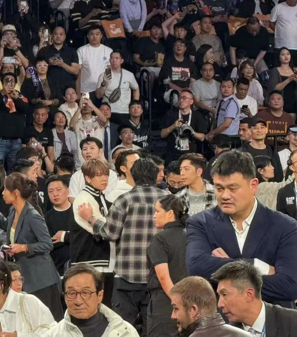到了场上,虽然姚明没怎么主动搭话,但从拍到的合影里总能找到他的身影,已经成了不可忽视的那个人。