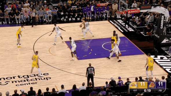 次节比赛,太阳多次迫近分差,但湖人总有回应。东契奇在本节还剩下7分32秒回归,他再度盘活整支队伍,湖人实现三分四连击再度拉开分差到双位数。东契奇在线外给到太阳太多的防守压力,一旦太阳采取盯防,东契奇就能突破造犯规罚球得分,湖人始终牢牢地把握着场上主动权。