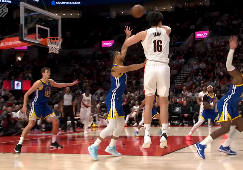 第三节前半段,勇士和开拓者又是来回奔袭,杨瀚森在这样的节奏里折返跑不停,也没干到什么事情。直到开拓者让杨瀚森开始接球,杨瀚森才命中了三分,随后库里还了一个三分,没想到能在季前赛就看到杨瀚森和库里对飚三分。