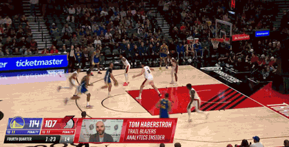 斯潘塞和TJD利用挡拆针对杨瀚森,小杨两分钟被吹2次犯规。开拓者替补阵容没有太多战术,杨瀚森多数时间蹲在底角拉开空间。最后1分钟,杨瀚森先是送给TJD一记大帽,接着连续假动作戏耍勇士防守,这一系列迷踪步太骚了!