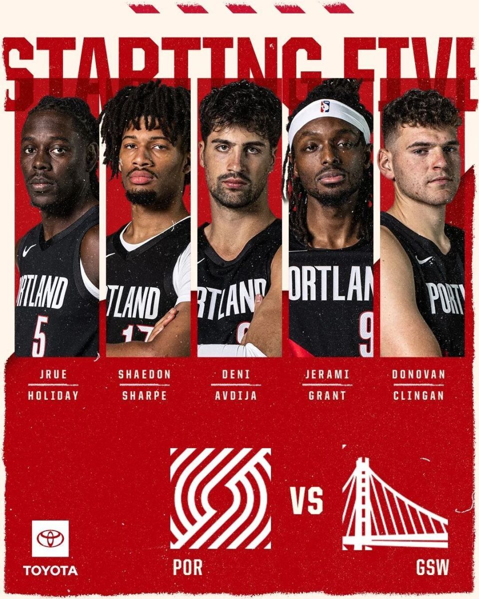 今天杨瀚森依然替补出战,格兰特重回首发阵容:霍勒迪、阿夫迪亚、夏普、格兰特、克林根。勇士这边,巴特勒(脚踝轻微扭伤)和追梦格林不打,56号秀威尔-理查德进入首发阵容:库里、波杰、理查德、库明加、霍福德。